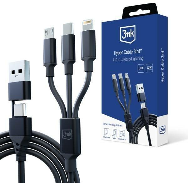 3mk Protection Hyper Cable 3w1 USB-A/USB-C -USB-C/Micro/Lightning 1.5m Black cable