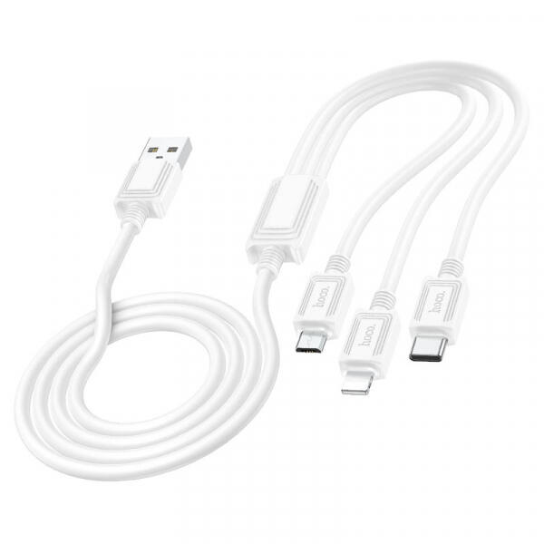 Apple Cablu Incarcare USB-A - Lightning / microUSB / USB-C HOCO X74 3in1, 18W, 1m, Alb