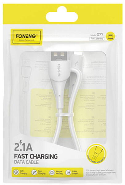 FONENG USB to Lightning Cable Foneng X77, 2.1A, 1m (white) (29942) - vexio