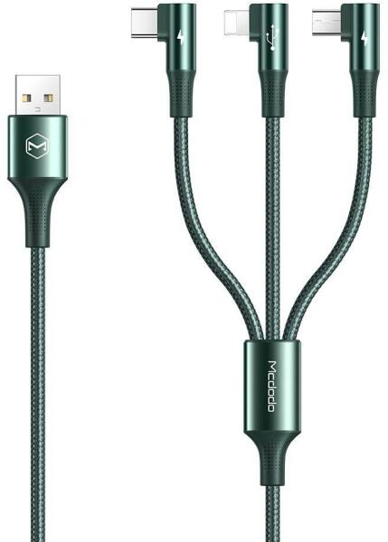 Mcdodo Cablu 3 in 1 90 Degree Lightning, MicroUSB si Type-C Green