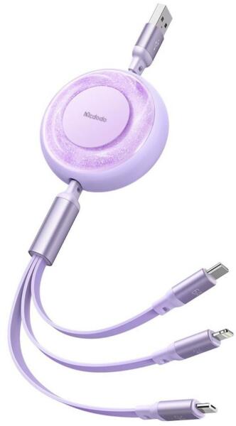Mcdodo Cablu Date Mcdodo 3 in 1 USB Lightning MicroUSB USB Type-C Super Fast Charging 66W 1.2m Mov (CA-3731)