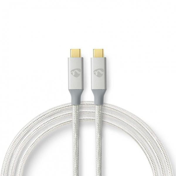 Nedis Cablu USB 3.2-C Gen 2 T-T 20Gb/s 5A/100W 2m brodat Argintiu, Nedis CCTB64020AL20 (CCTB64020AL20)