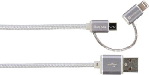 SKROSS Cablu USB 2 in 1 SKross Steel Line cu Conector MicroUSB si Lightning 1m Argintiu (CABLE-USB/UUSB/L-1.0SR-SKRS)