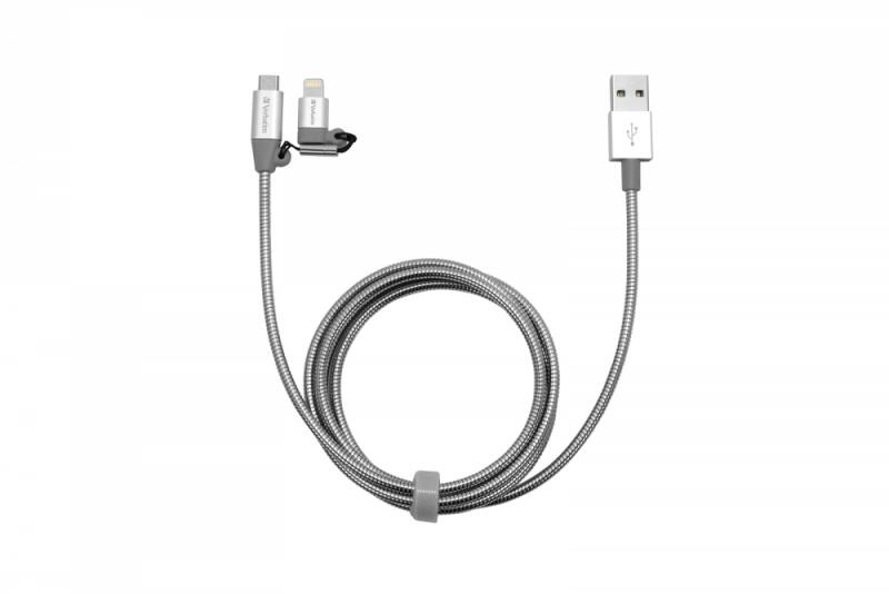 Verbatim Cablu Verbatim 2-in-1 Lightning/Micro B Stainless Steel 100cm Argintiu (48869)